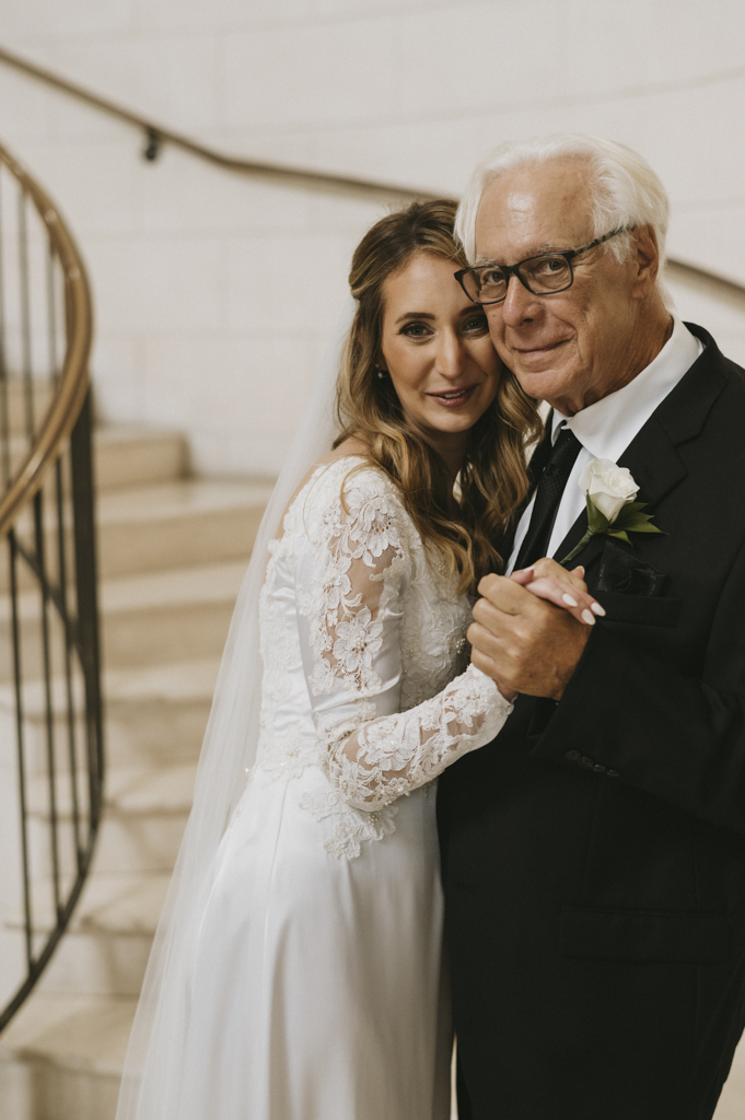 One of the most heartwarming moments of the day unfolded on the grand staircase in the lobby. Here, amidst the elegant backdrop of Lakewood Ranch, Breeze shared a touching first look with her father. As tears welled in their eyes and embraces spoke volumes, I discreetly captured the raw emotion of this cherished moment.