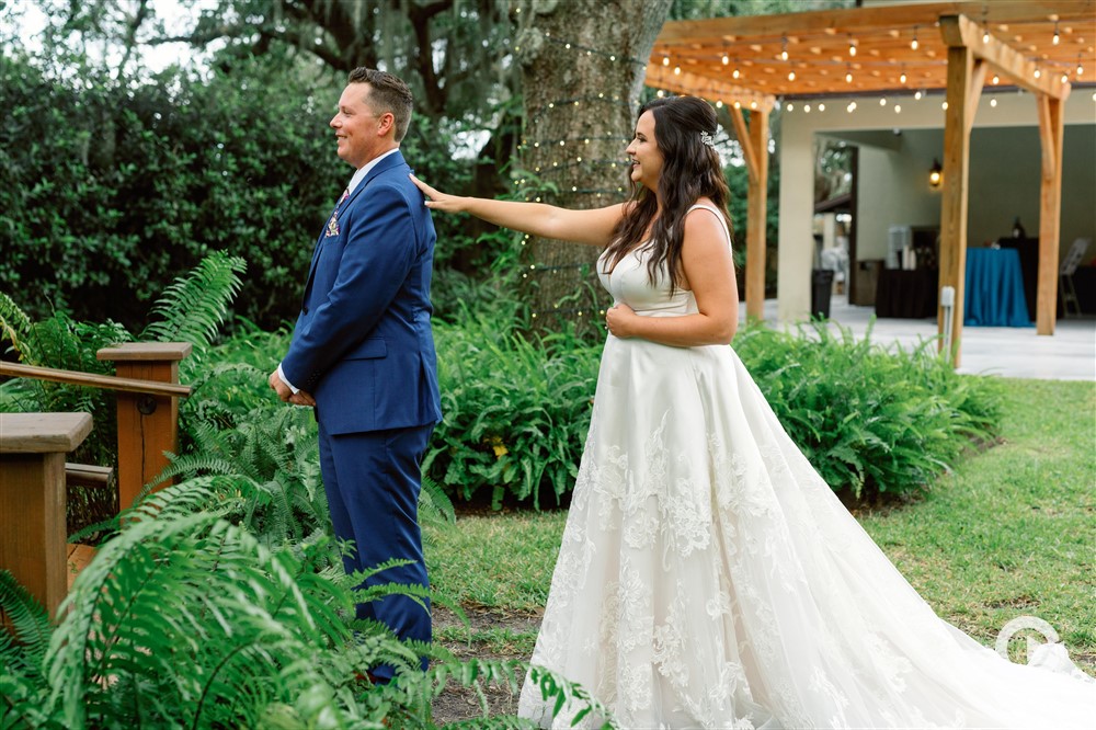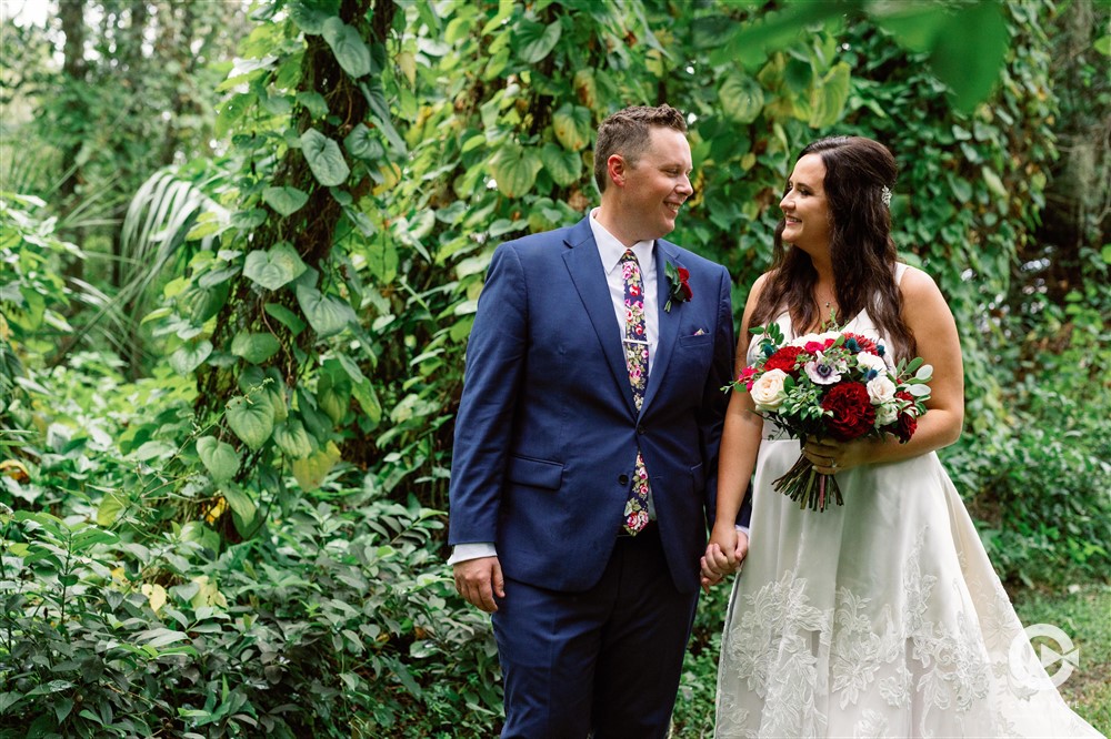 Beneath a majestic oak tree on Baker’s Ranch property, the ceremony unfolded in a natural and intimate setting. The stunning Florals by Events in Bloom, Tampa, FL, added a touch of nature’s beauty, complementing the serene surroundings.