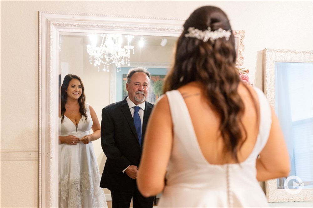The celebration kicked off with a lively champagne toast as Melanie and Phil popped bottles with their wedding party, setting the vibe for the day. A touching first look between the bride and her father added a heartfelt touch, capturing the emotional essence of the day.