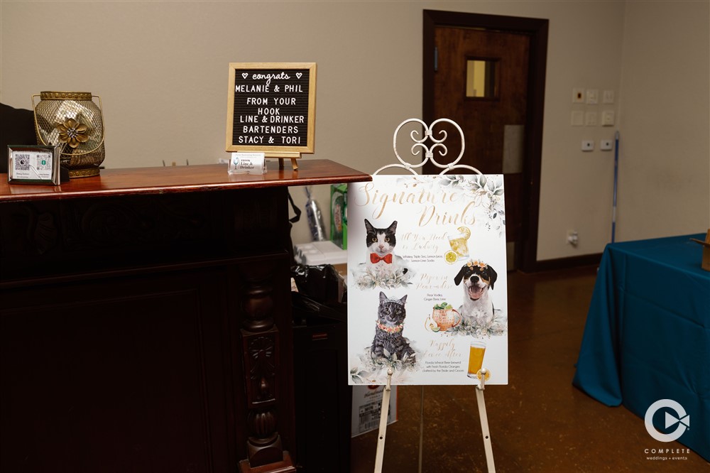 Sugar Paste Cake of Sarasota, FL, crafted a delightful and tasty 4-tier wedding cake. Blue Water Catering Company treated guests to delicious appetizers during cocktail hour and a full buffet of culinary delights for dinner. The bar added a personal touch with specialty cocktails named after Melanie and Phil’s beloved pets, Ludwig and Piper.